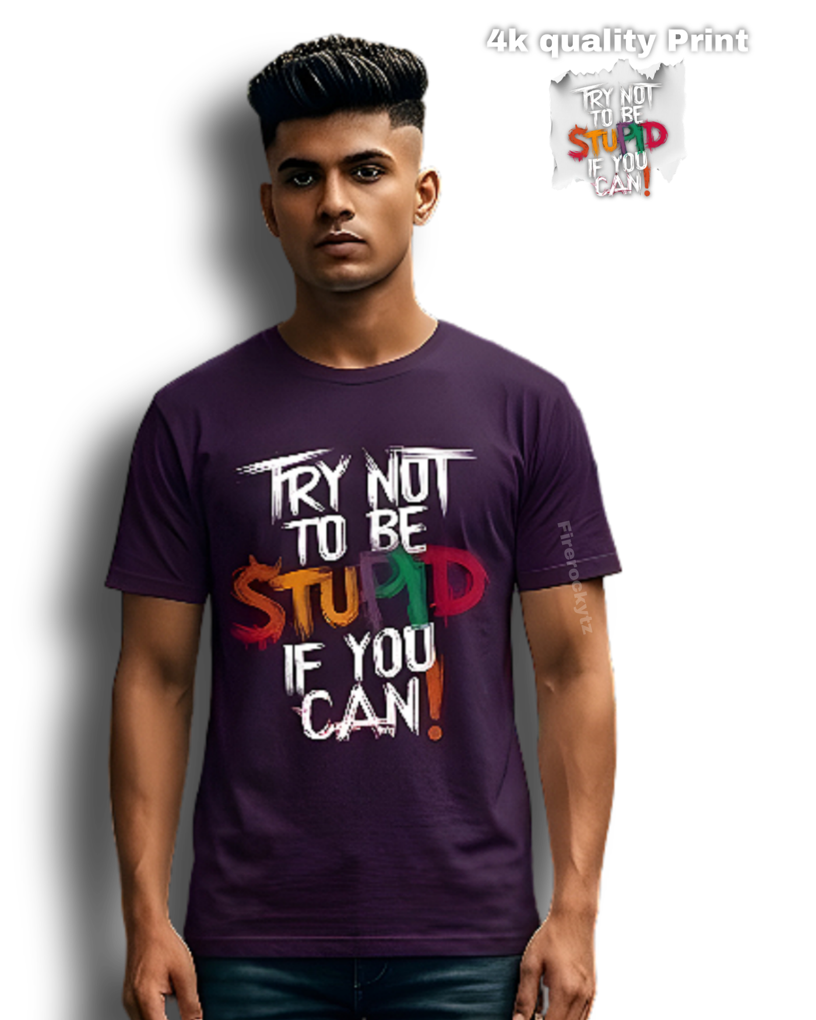 Premium 180 GSM cotton T-shirt with a bold, colorful “Try Not To Be Stupid” graphic print. Soft, durable, and perfect for casual streetwear.